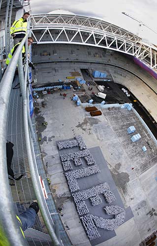 Det är sällan tråkigt på jobbet. Förra fredagen gjorde jag en stor produktion för Tele2 på nya Tele2 arena bakom Globen. 1450 Tele2 anställda försågs med vita ponchos och ställdes upp i en human logo. Två specialister hade flugits in från England för att formera alla människor. Jag hade rigoröst säkrat en GoPro för filmningen, en Canon 5D Mark III med timer som exponerade 1 bild i sekunden för timelapes samt en reservkamera riggad om den skulle strula. Sen var det lite stillbilder att plåta också. Förberedelserna tog några timmar och själva formationen tog 45 minuter. En timme efter det att sista personen lämnat arenan fyllde alla anställda golvet inne i Globen för personalfest och en snabbredigerad variant av filmen visades på gigantiska tv-skärmar under stort jubel. Filmen ligger nu på youtube så klicka på länken och kolla.